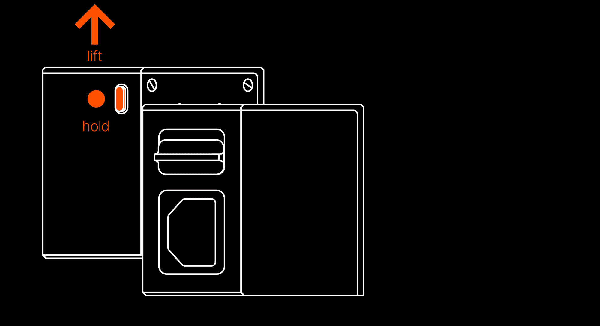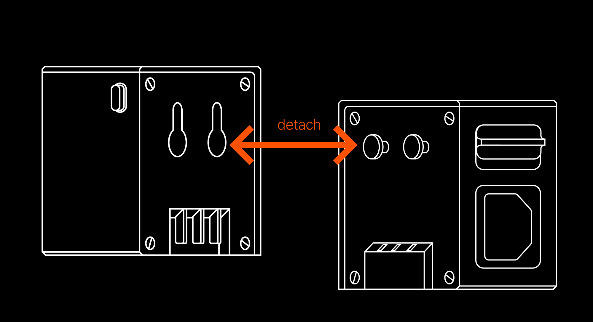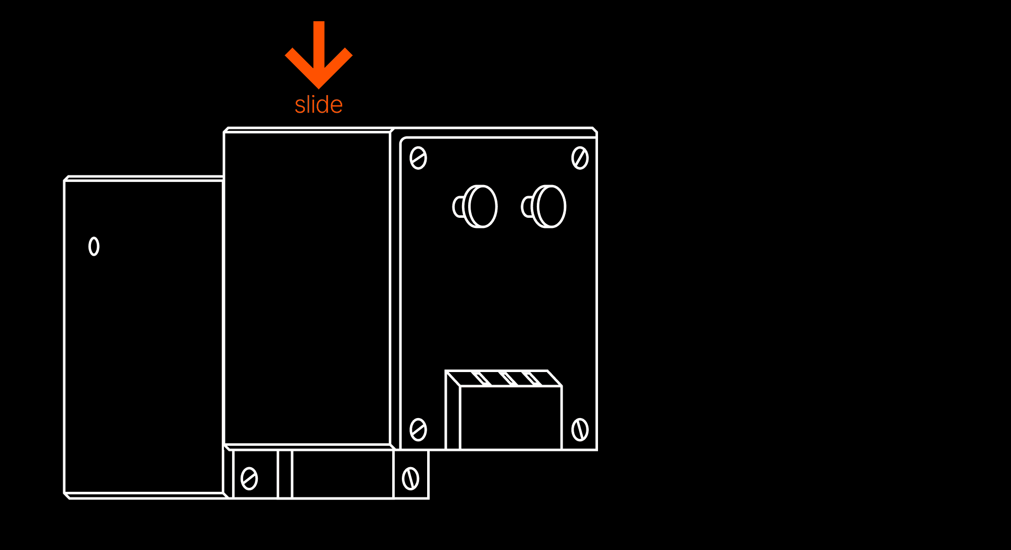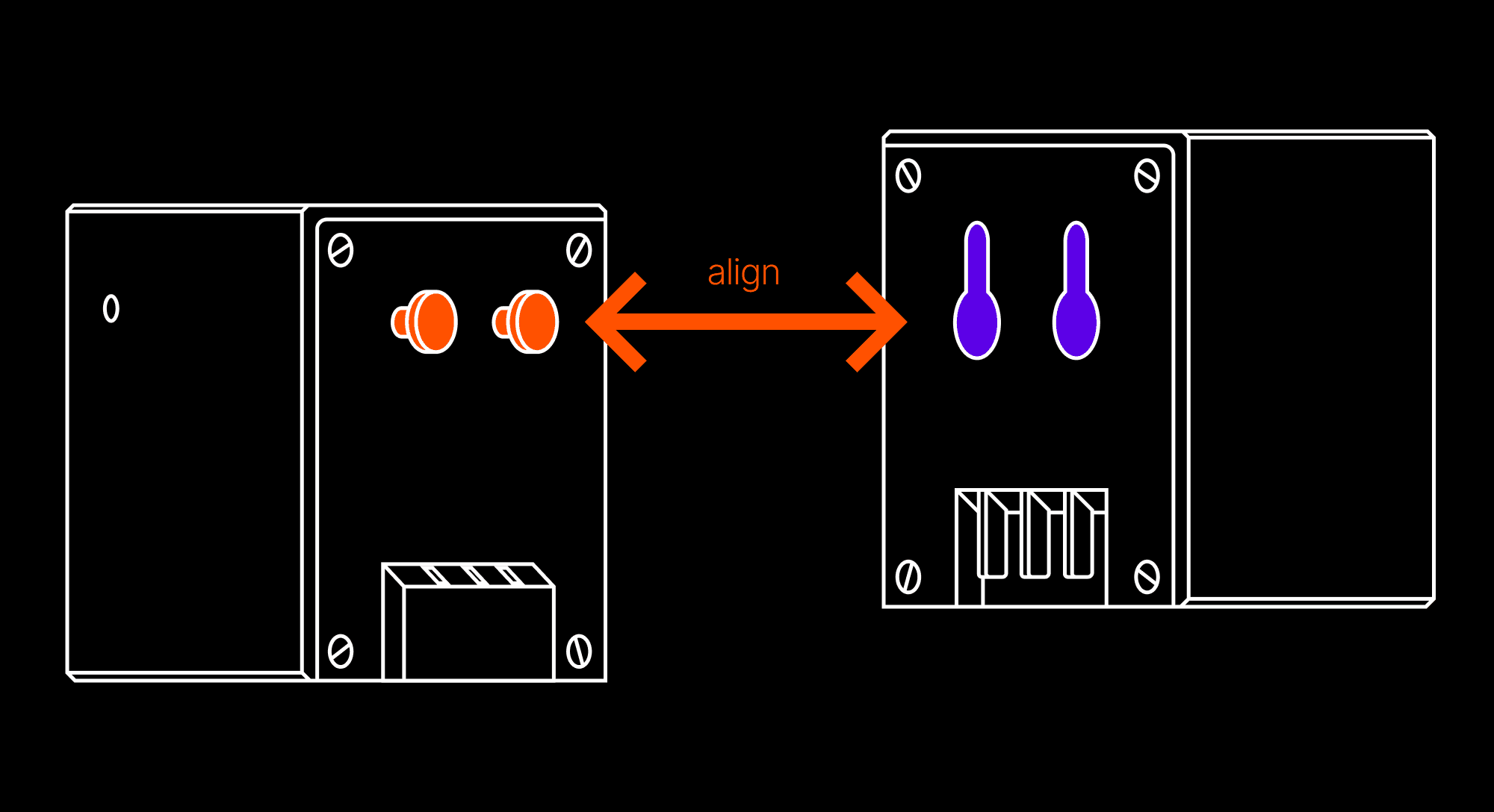 Insert the metal connectors on the right side of one module into the lock holes on the left side of the other module.