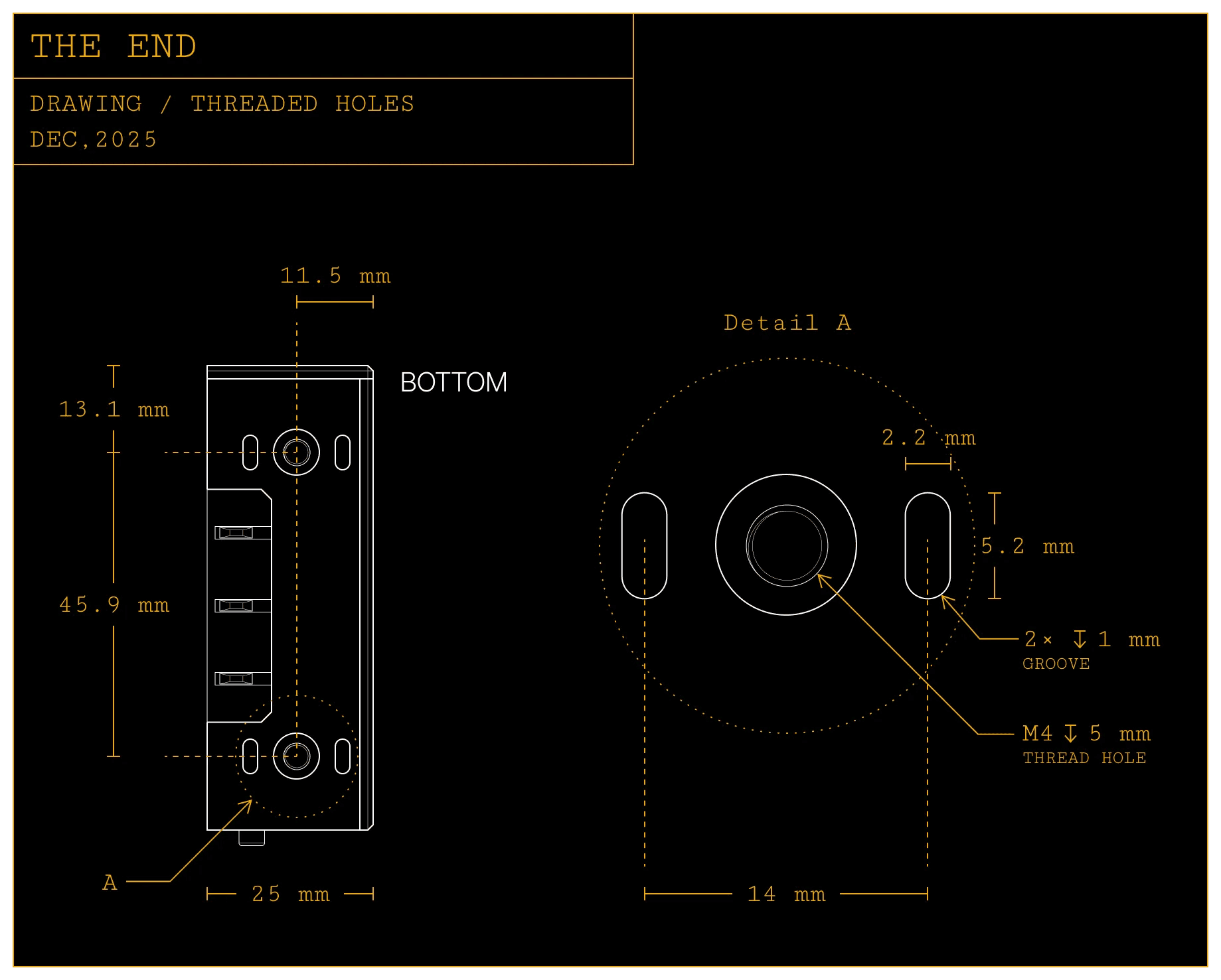 The threaded holes are pre-installed with silicone pads by default. They provide friction against desk surface and help keep the array stable.