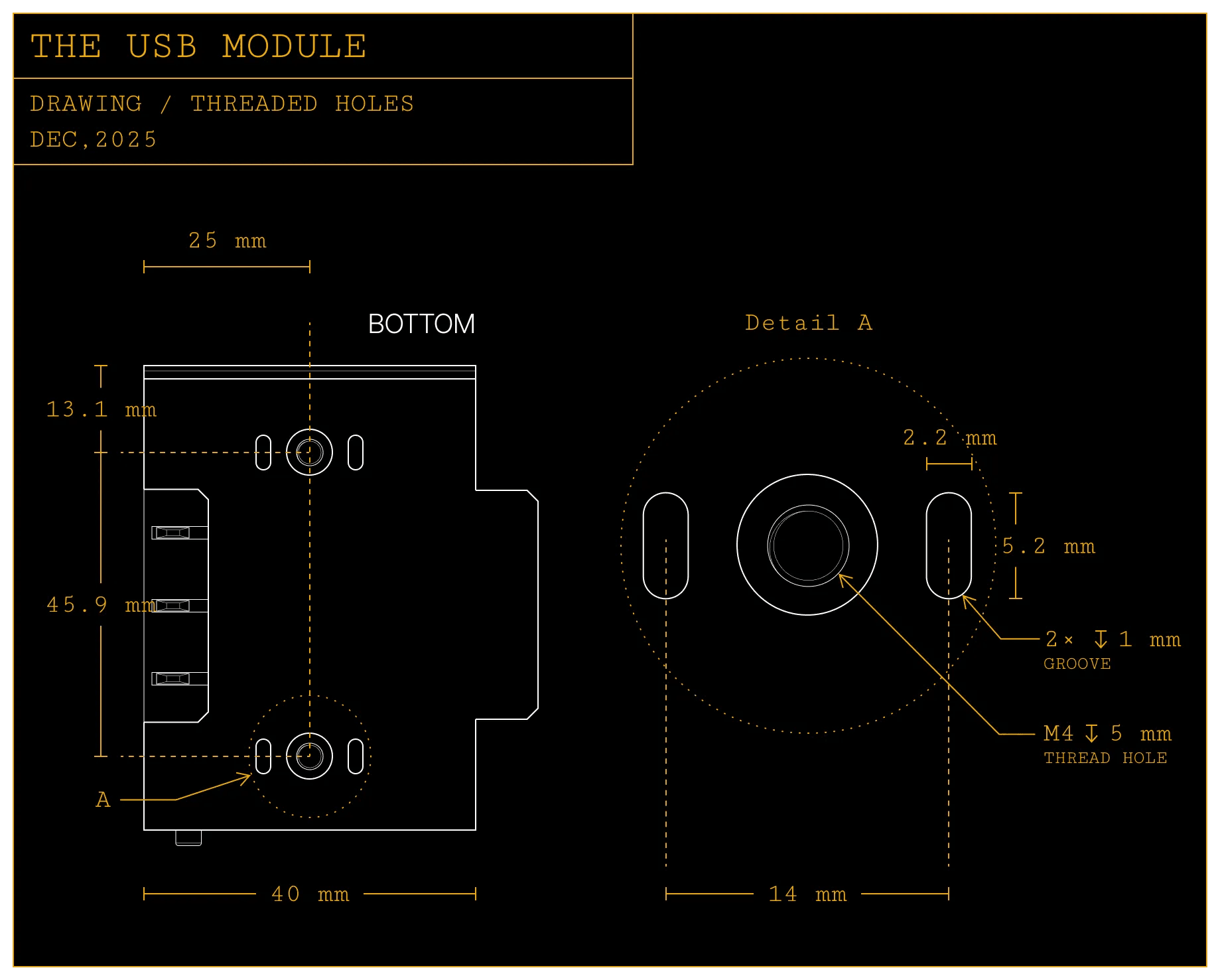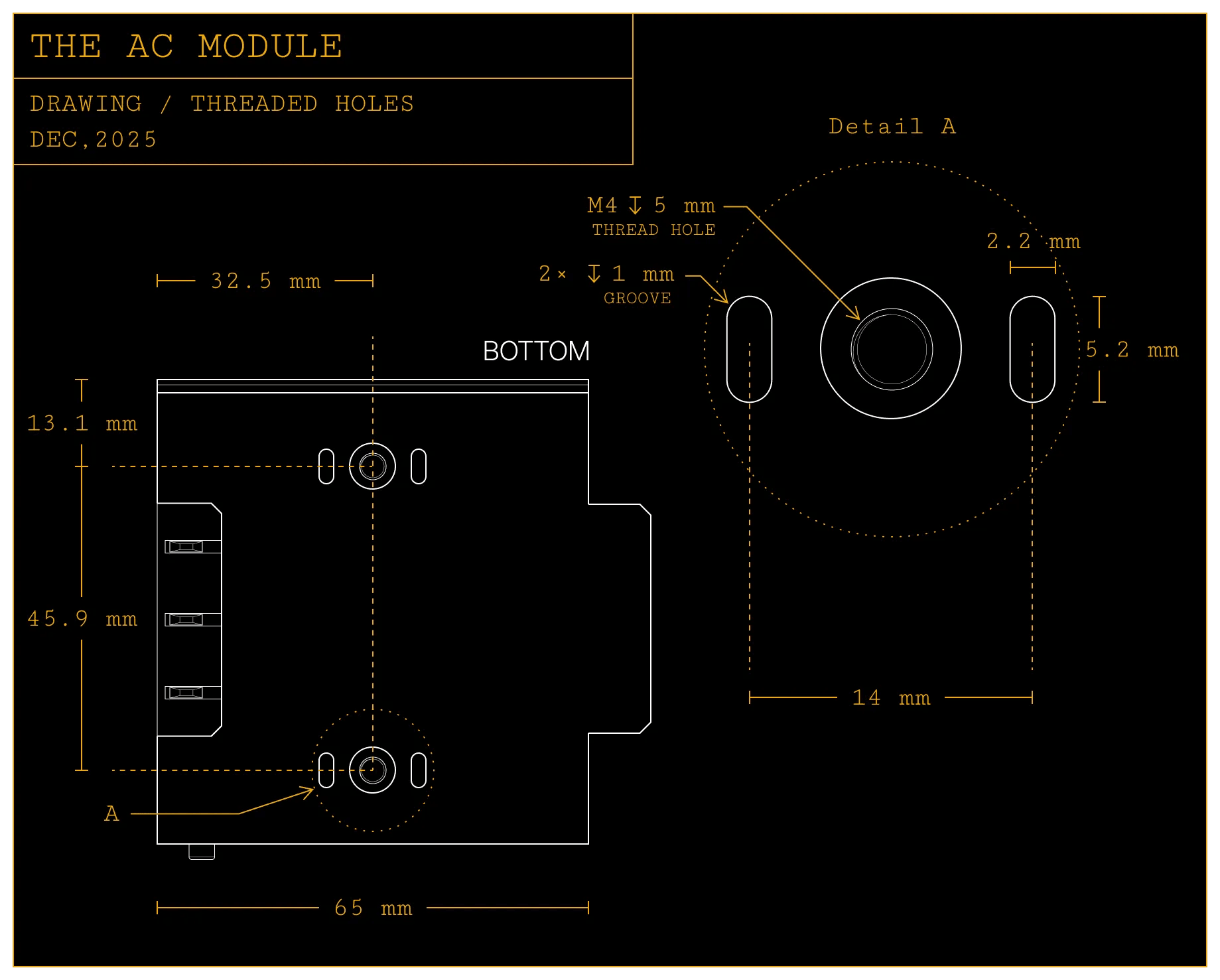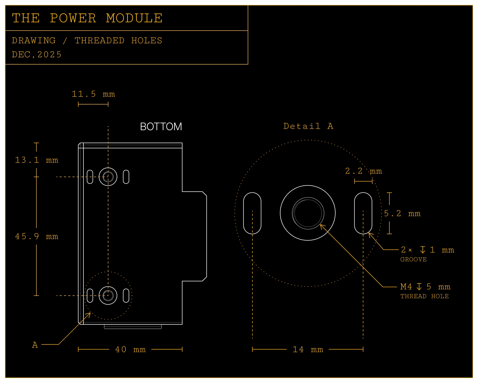 Each module has standard threaded holes on the bottom. You can design and attach your own accessories.