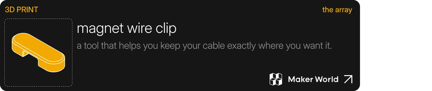 If you have a 3D printer, you can test out the magnet wire clip we designed as a starting point for creating your own accessories.