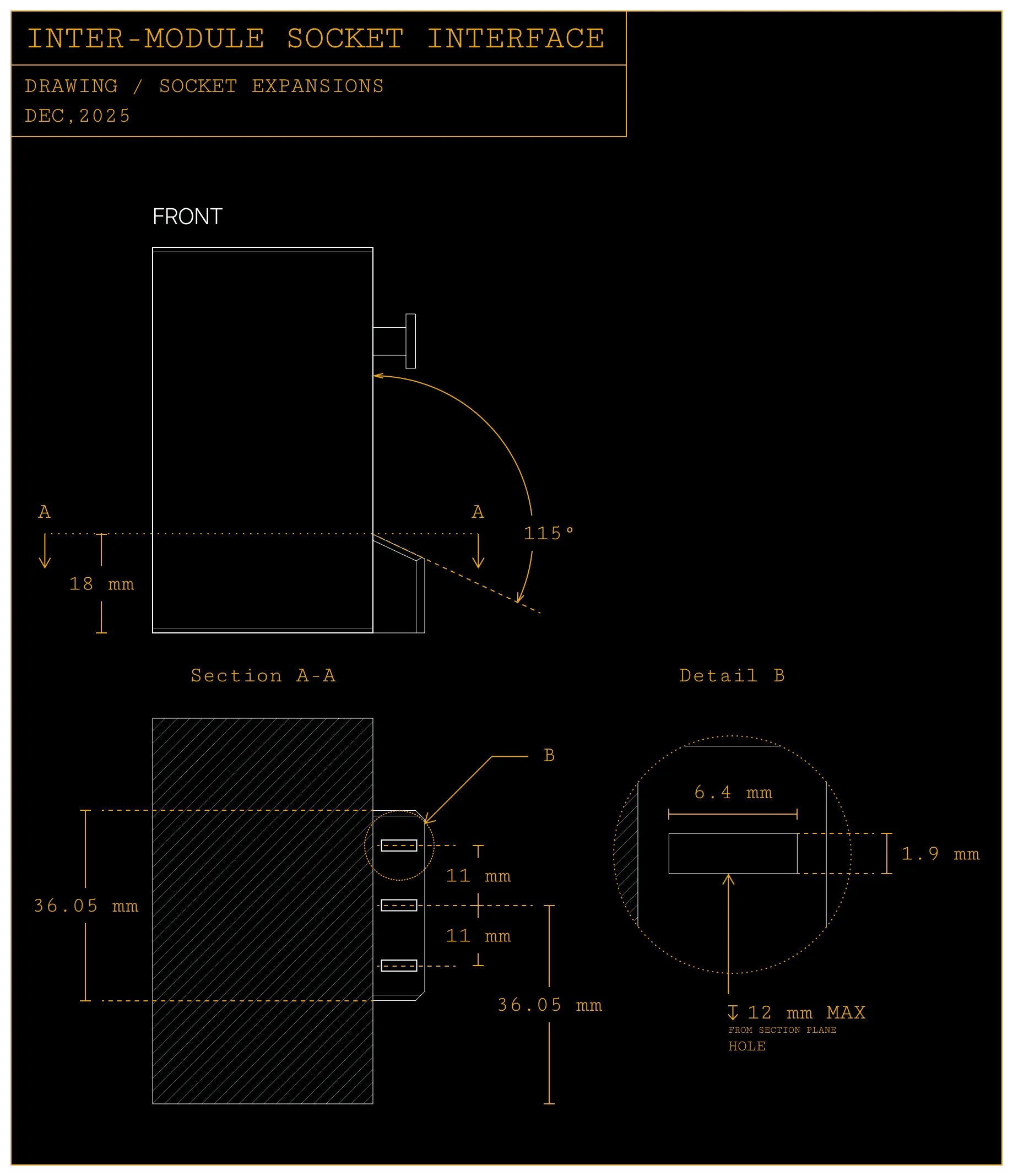 The inter-module sockets or AC sockets carry high voltage when powered. Please ensure all your designs include proper insulation and safety protection before use.