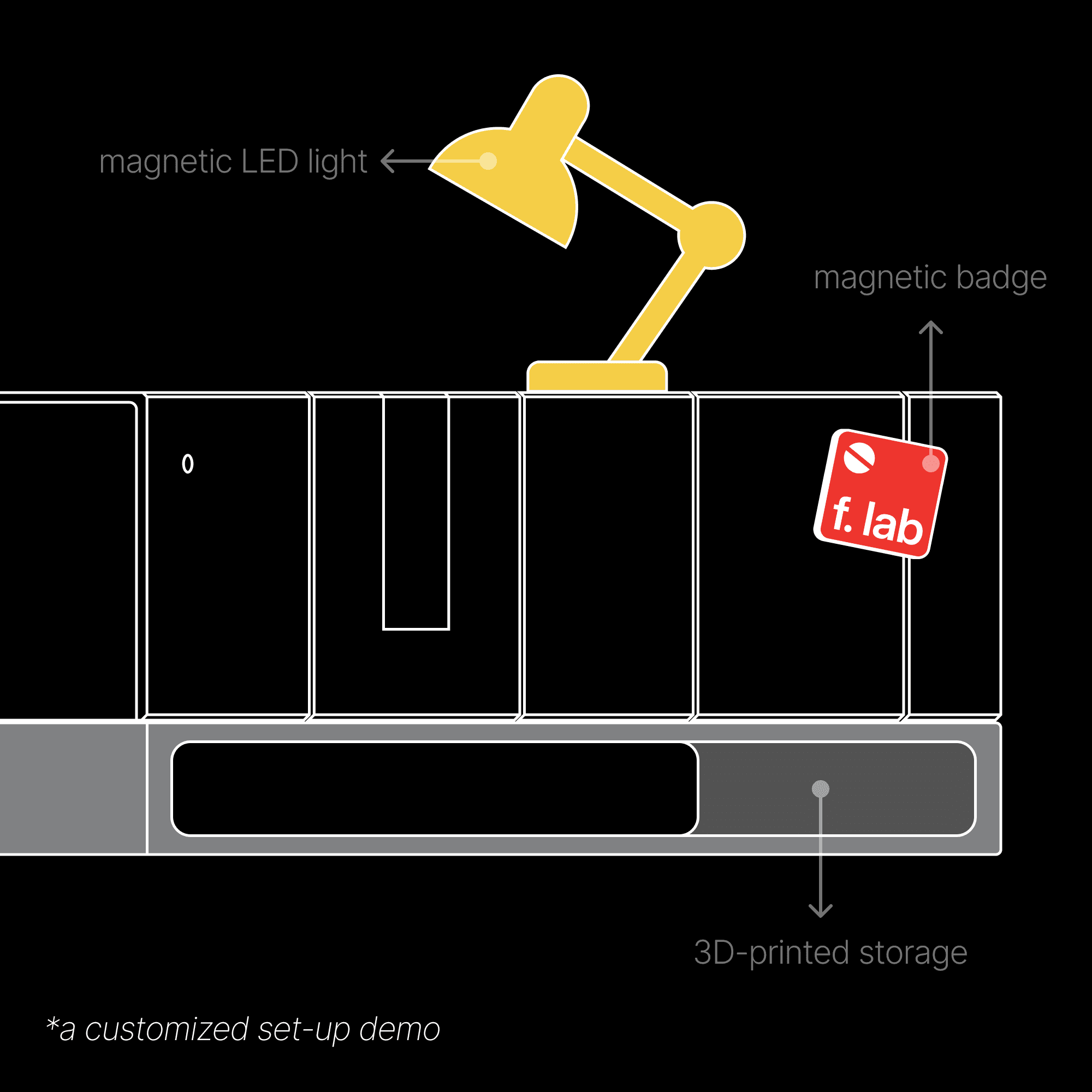 After the assembling is complete, you may apply your own decorations like magnets on the magnet-friendly surface and your own 3D printed accessories on the threaded mounts.