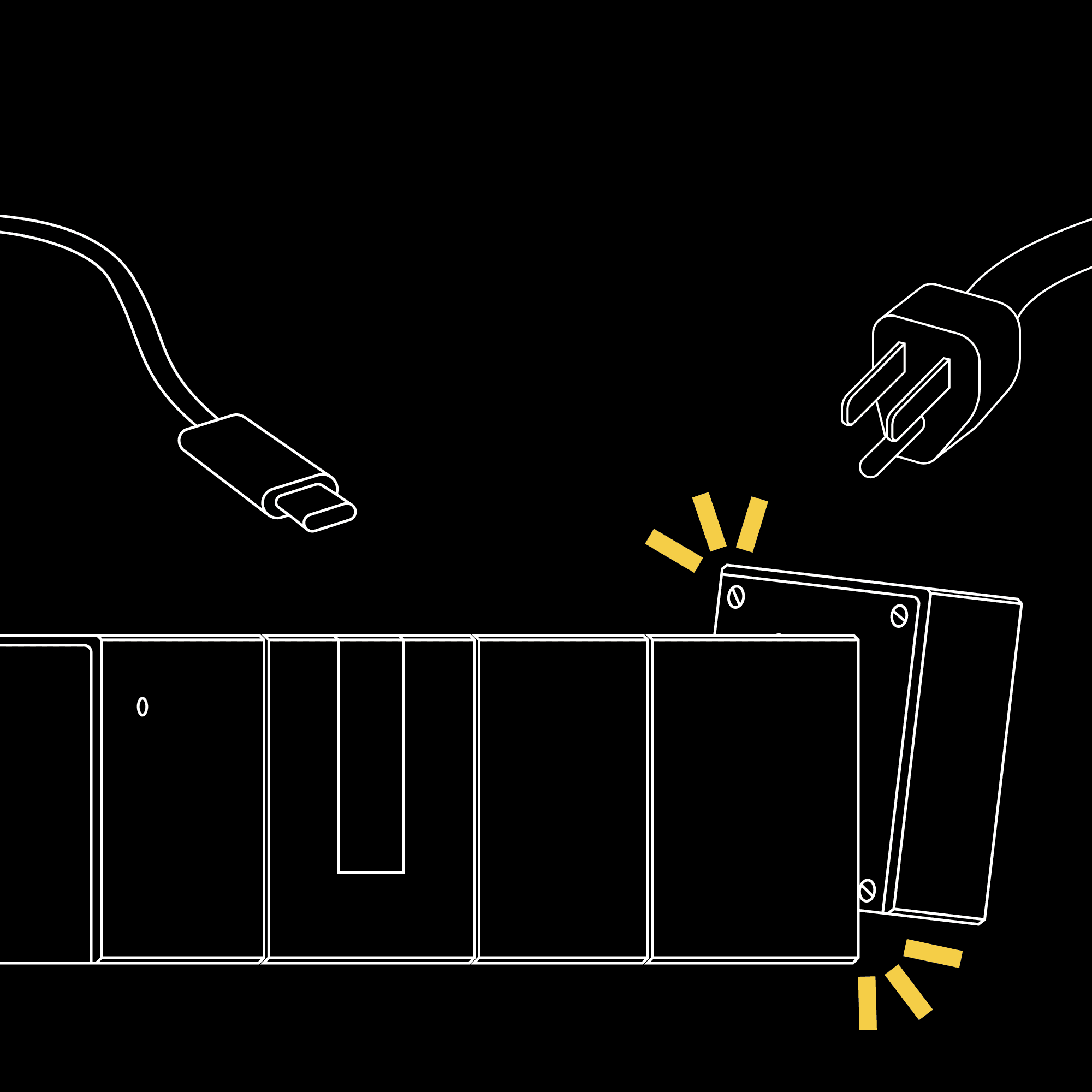 For devices that only need occasional charging, use the retractable cable on the cable module. The cable module also includes an extra USB-C port for always-on devices. If you have many devices that often charge at the same time, you may need an additional cable module.
